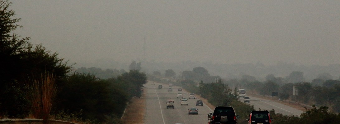 Can you see the road in this pic, a parthced muddy one with a biker, took after taking a stop by the side in the expressway, is there a trail of dust in the air left by the biker?