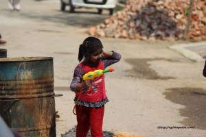 A Baby Girl armed with her Water Canon